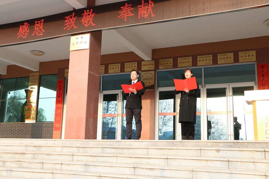 孙仲圣、李宁两位老师带来诗朗诵《我骄傲,我是一名班主任》。两位老师代表全体教师表达了自己对教育、对学校,对学生的热爱之情,阐述了为师者的责任与幸福,更坚定了当好学生引路人的信念与决心。