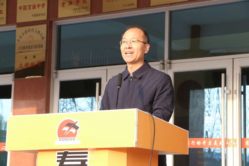 副校长丁超德传达了“举办寿光现代中学首届班主任节”的决定。他希望广大师生能以本次班主任节为契机,在这个美好的春天,迸发出蓬勃向上的动力,师生同向同心,开辟新赛道,打造新优势,全力助推学校教育再上新台阶、铸就新辉煌!