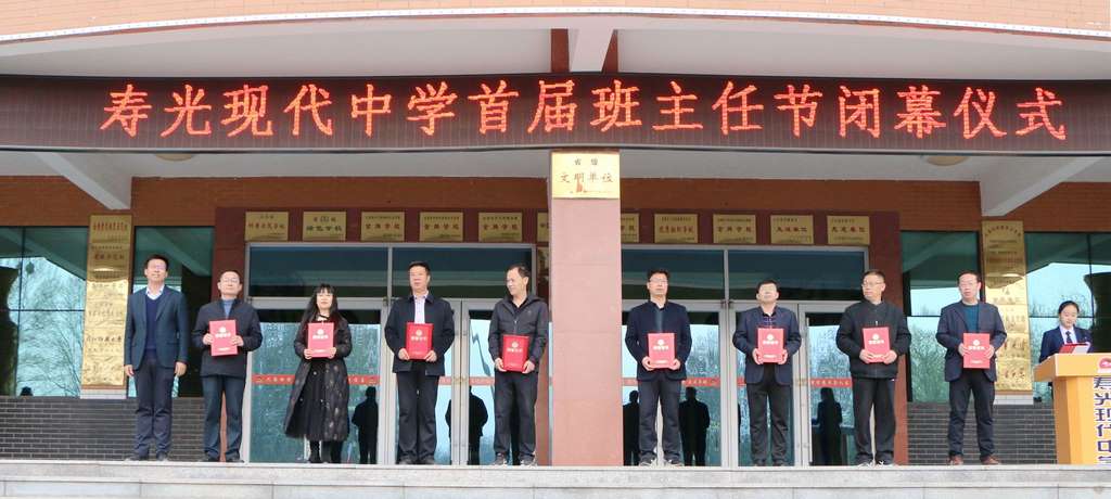 学校领导孙安源、张建波、张法国、赵泽绪、唐琳、张会智、李涛为获奖班主任颁奖。希望受到表扬的优秀班主任珍惜荣誉,爱岗敬业,勤奋工作,为现代中学教育事业的蓬勃发展再立新功;希望全体教师对标先进,积极作为,奋发有为,为寿光教育事业的高质量发展做出应有贡献。