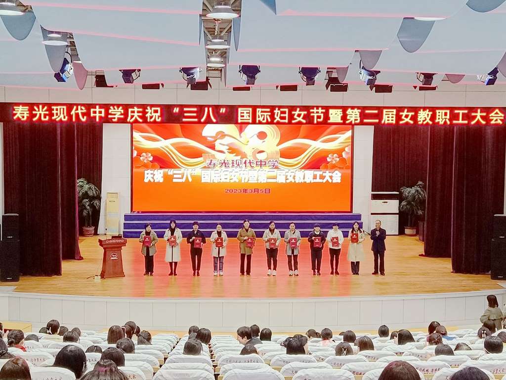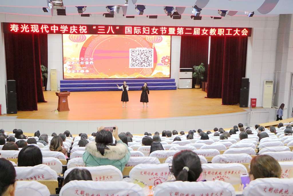 35日晚上,寿光现代中学庆祝“三八”国际妇女节暨第二届女教职工大会在学校报告厅顺利召开。学校全体女教职工参会,学校校长、党委书记孙安源及校级班子成员出席会议。活动由燕彩云主任主持。