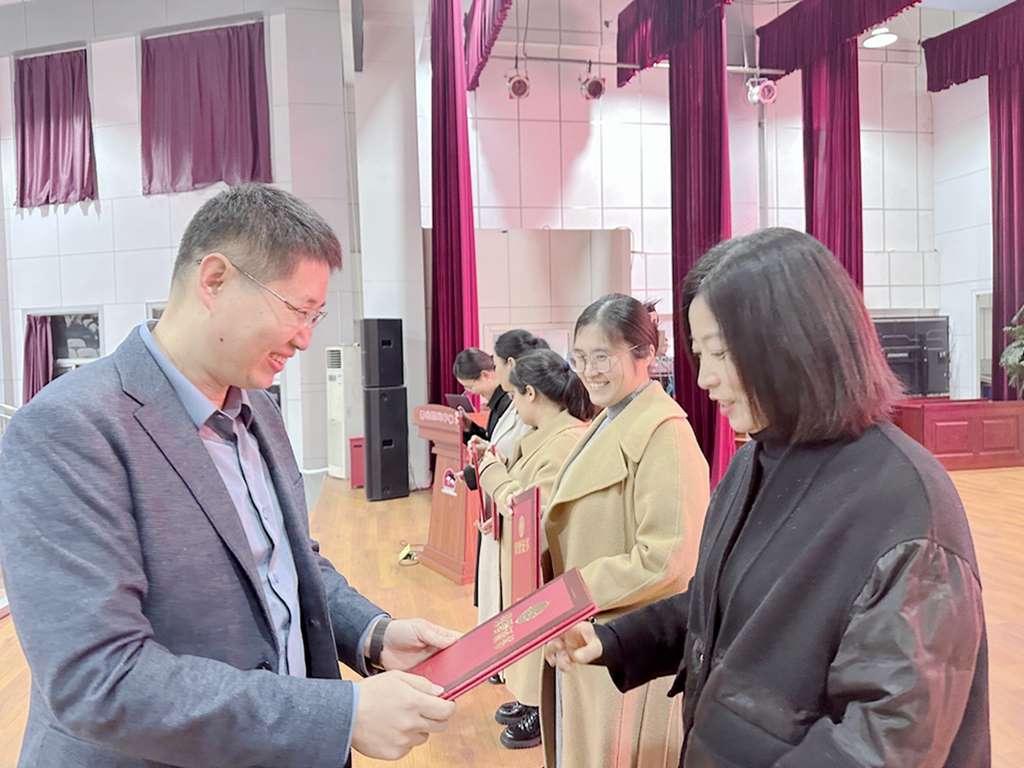 柔肩亦能担重任,倾尽心血育桃李。女教职工们用包容与贤达全力演绎着家庭中的每一角色,以热爱与坚守在平凡的岗位上谱写出一曲奉献之歌。她们是旗帜,更是榜样。校级班子成员为“‘三八’巾帼旗手”获奖者颁发证书。