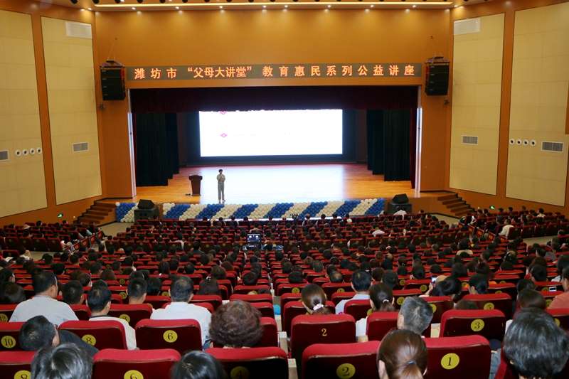 为帮助缓解孩子考前焦虑、稳定心态,引导家长高效助力减压,帮助考生以良好的状态顺利迎接考试,2019年5月19日上午,由潍坊市文明办、潍坊市教育局主办,潍坊市中小学家长联合会、潍坊行知家庭教育和心理健康指导中心、潍坊四中承办的,面向中高考学生家长的“父母大讲堂”教育惠民系列公益讲座活动在潍坊四中艺术馆多功能报告厅开讲。