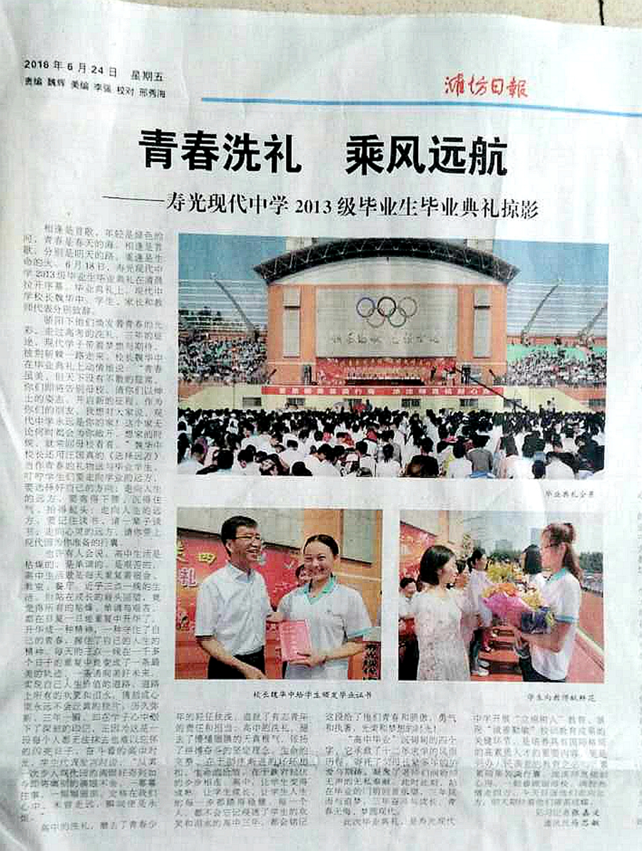 6月22日《寿光日报》全版介绍我校举行2013级毕业典礼