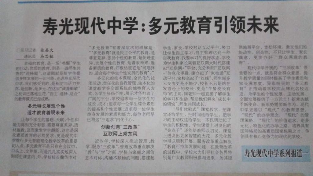 6月29日《潍坊日报》教育版头条现代中学系列报道:多元教育引领未来(一)