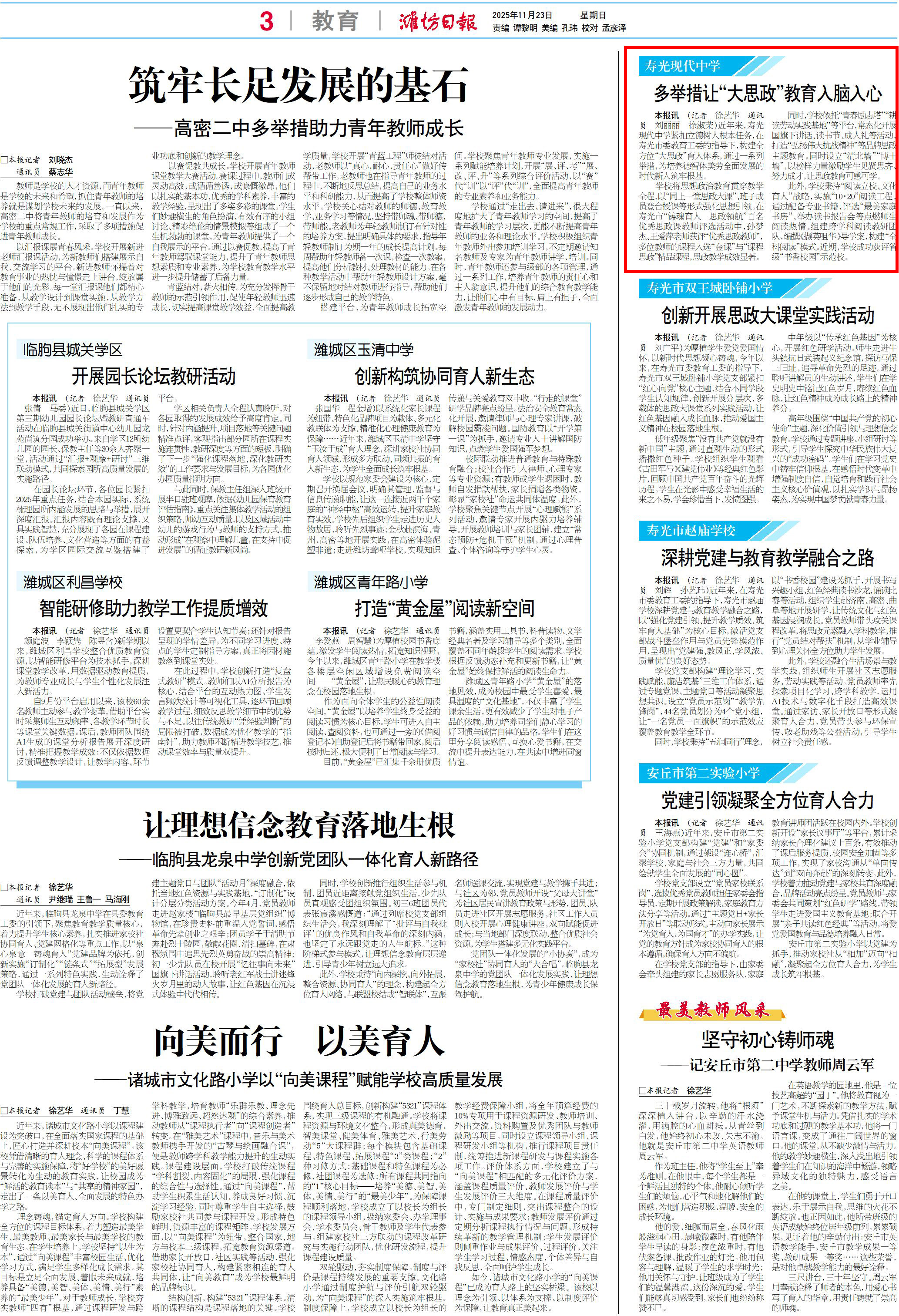 潍坊日报第三版刊发我校教职工“大思政”工作方面的经验做法