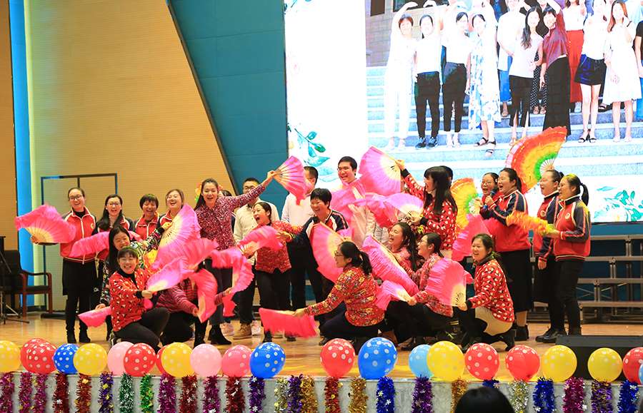 又到辞旧迎新时,12月21日下午,现代中学东校区全体老师齐聚一堂,喜迎新年。联欢会上歌声悠扬,舞姿蹁跹,学校各学部及行政组“各显神通”,自编、自演、自排的近30个节目有歌舞、小短剧、戏曲、朗诵、合唱、独唱……轮番上阵,充分展现了东校老师们的创意和活力。在《生日帽蒙眼踢毽子》、《你比我来猜》、《疯狂猜歌名》等游戏环节,老师们有趣搞笑的表现让全场笑声掌声不断。整场晚会,歌声、笑声、掌声、欢呼声交融在一起,全体教职工的希望与热情都在此刻被点燃,欢乐的气氛洋溢在礼堂的每一个角落,笼罩着每一位教师,2个多小时的欢声笑语给全体教师留下了美好的记忆。