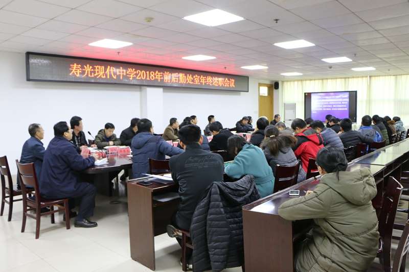 为更好的总结成绩,反思不足,创新未来,1月17日下午,寿光现代中学在二楼会议室举行了“2018年度处室工作述职评议”会议,学校校长、党委书记孙安源带领学校领导班子出席了会议,前后勤各处室中层副职以上人员参加了会议。会议由副校长赵国田主持。