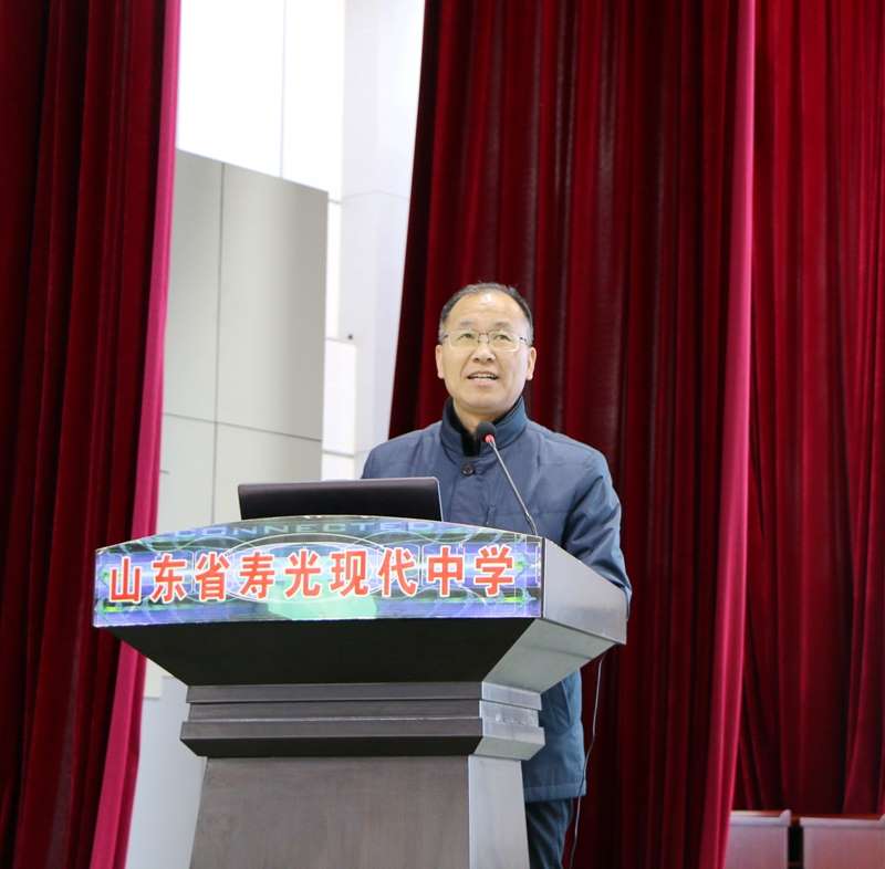 随后,学校校长、党委书记孙安源以“拉家常”式的风格,做了题为《做努力奔跑的追梦人》的致辞。孙校长从2018年重点工作及成绩、学校愿景及重点实施路径、2019年初步设想、假期建议等四个方面娓娓道来,团拜会现场气氛热烈、融洽。谈到2018年的工作,孙安源校长总结出了“五个一”:叫响了一个“品牌”;丰富了一个“理念”;实现了一个“跨越”;打造了一个“工程”;收获了三个“唯一”。孙校长说,寿光现代中学2018年的成绩可圈可点,收获来之不易,学校的每一点进步,工作的每一项进展,都凝结着全校教职工的心血和智慧,是全校教职工团结一心、共同奋斗的结果。