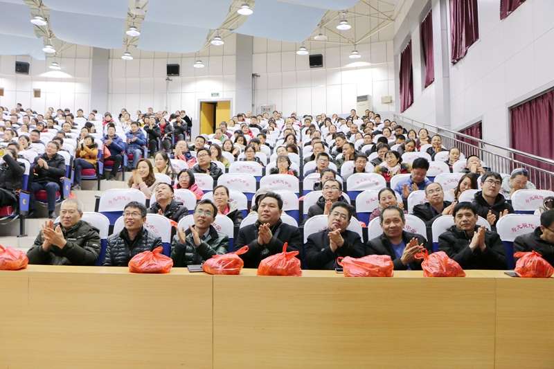 火红的灯笼把学校装点得格外喜庆,晚上6点30分,伴随着悠扬、欢快的音乐,全校教职工们陆续步入报告厅。
