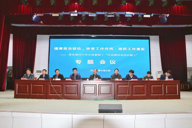 3月3日晚,寿光现代中学在学校报告厅召开加强工作作风建设专题会,进一步严肃工作纪律,落实岗位职责,加强作风建设。学校校长、党委书记孙安源带领学校领导班子出席会议,全体教职工参加会议。会议由学校副校长杨卫忠主持。