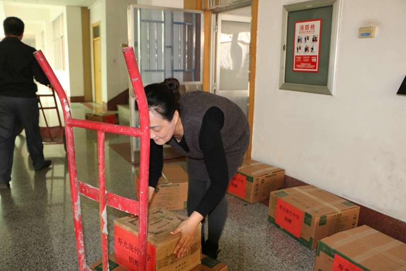 寿光现代中学快速反应,积极行动,向全校师生发出倡议书,认真组织了“爱心传递,真情永驻”师生捐书献爱心活动。各班师生拿出自己喜爱的图书,为麦盖提的孩子们奉献了一份爱心。此次所捐图书种类繁多,有科普知识读本、有世界文学名著、有学科辅导、有漫画也有经典童话……学校校长、党委书记孙安源带领学校教职工将36314本图书精心分类、打包、整理、装车。这些承载寿光现代中学师生爱心的图书,将跨越千里,在新疆的同学们手中传递真理、信念和力量,帮助他们健康成长、放飞希望、成就梦想。