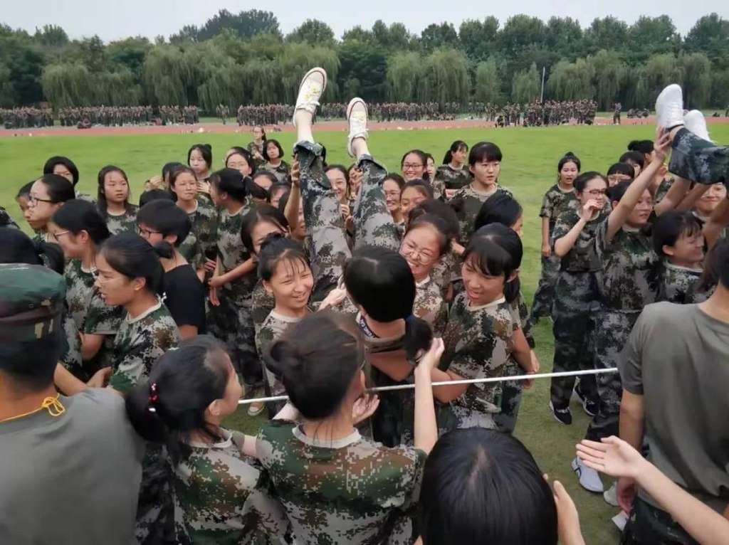 军训过程中还进行了“战地逃生拓展训练”,增强了士气和凝聚力,提高了团队精神。