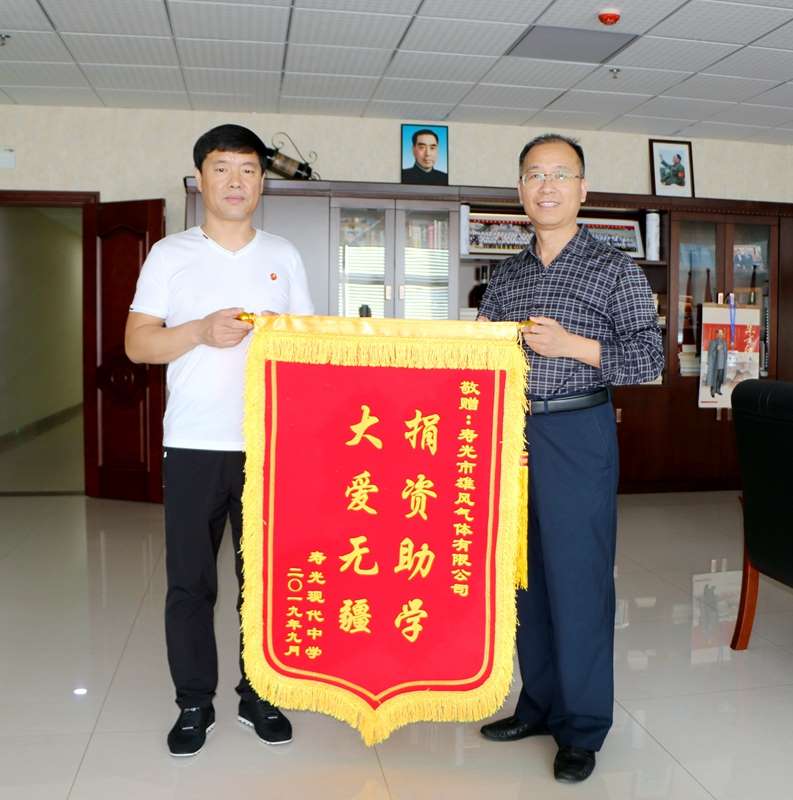 倾心教育暖人心 心怀感恩送锦旗 ——寿光现代中学为两家捐资助学的爱心企业送上锦旗