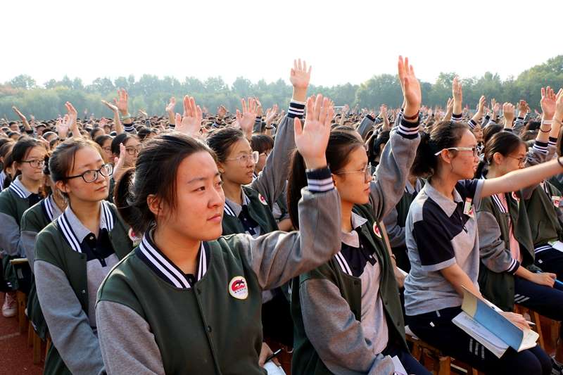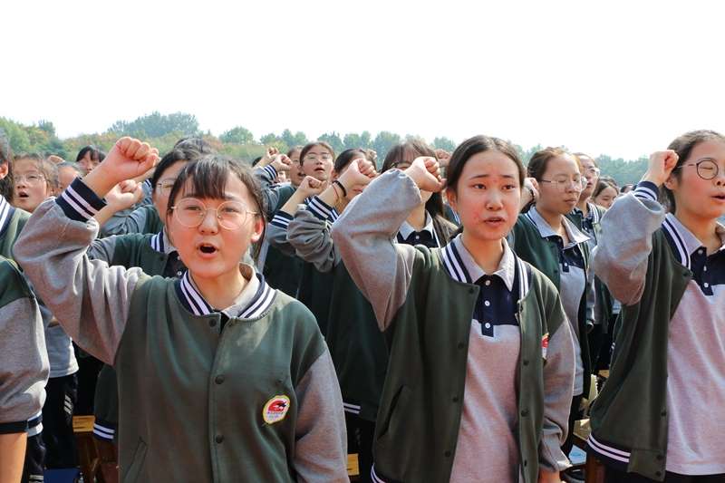 之后,高三四个部在各级部主任带领下,举起右拳,大喊口号,进行宣誓。内心源动力的爆发,唤醒所有潜能,向着既定目标前行,高考,必胜!