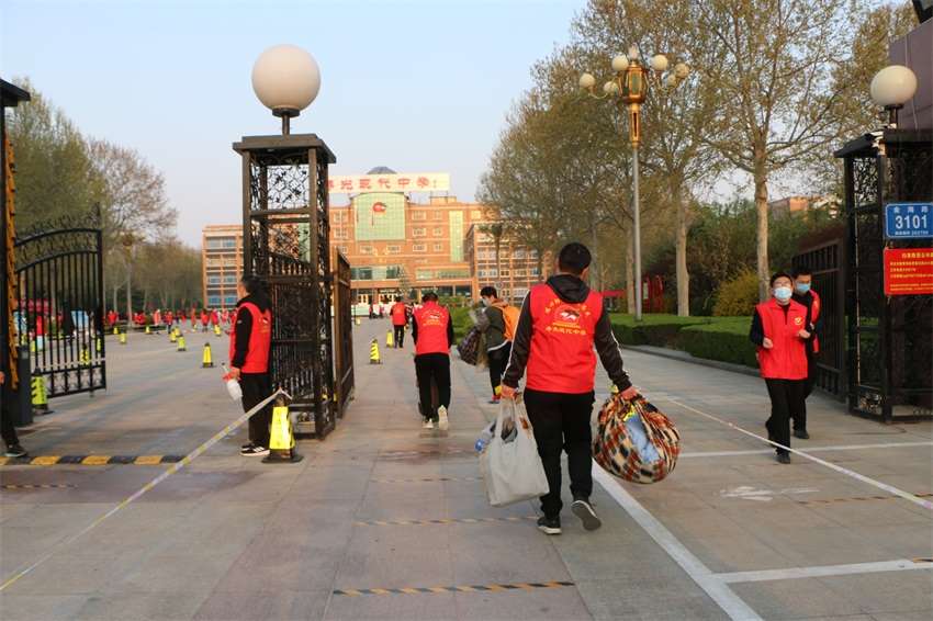 复学当天,全体干部教师身穿标志性志愿者服装“红马甲”,早上5:30吃早餐,6:10进入了工作程序,中午来不及休息,正午12点就上岗,直到下午6:30结束,连续工作接近12个小时,保证了高三全体同学有条不紊、安全顺利的进入学校,的确令人感动和佩服,当天的“现代红”成为了现代苑内外最靓丽的一道风景。