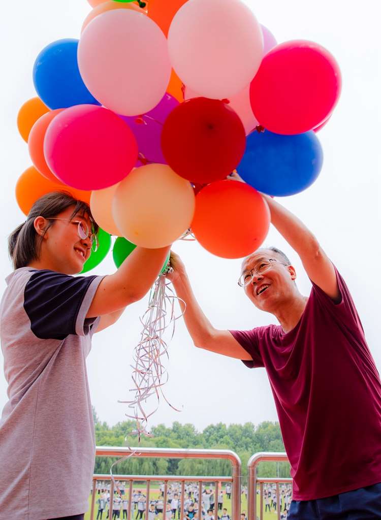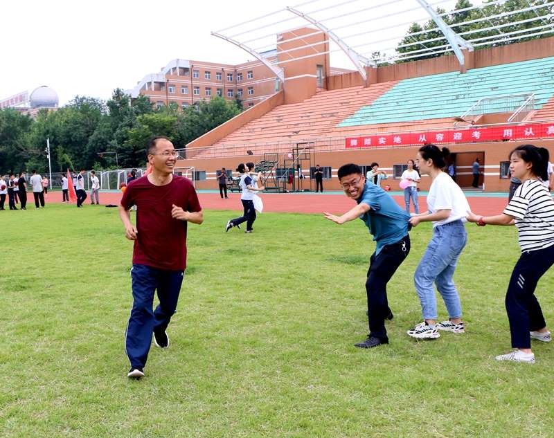 夏日骄阳下,学校校长、党委书记孙安源与学生手拉手做起了游戏,师生开怀欢笑,享受着难得的好时光。班主任老师也加入其中,简单的游戏,在大家的一起参与下,变成了一场别样的狂欢。在拼搏成长的征程上,学会适时地调整和放松,也是每位学子的成长课题。