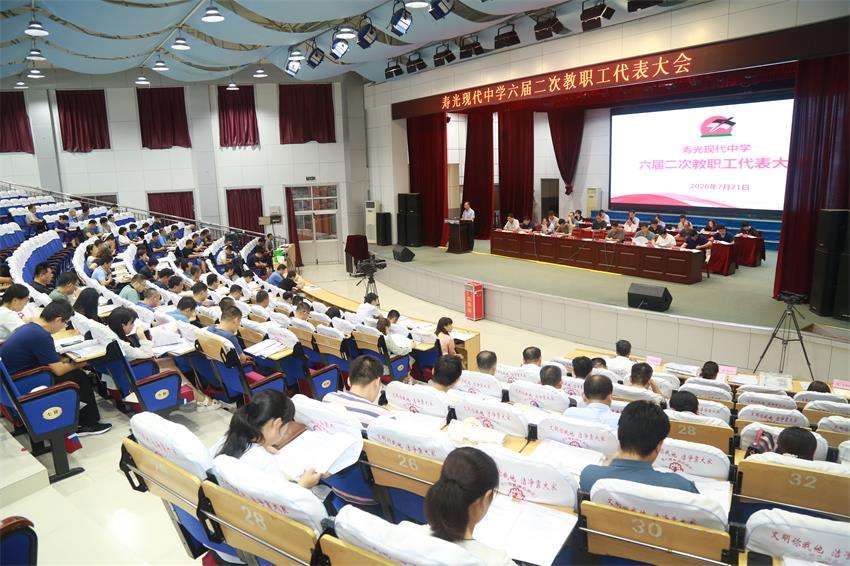 寿光现代中学六届二次教职工代表大会于2020年7月21日--23日在学校报告厅召开。会议由学校党委副书记李志刚主持,校长、党委书记孙安源带领所有党委会成员及代表111人参加,历时三天,会议内容丰富,会议安排规范、严谨、有序,会议成果丰硕。