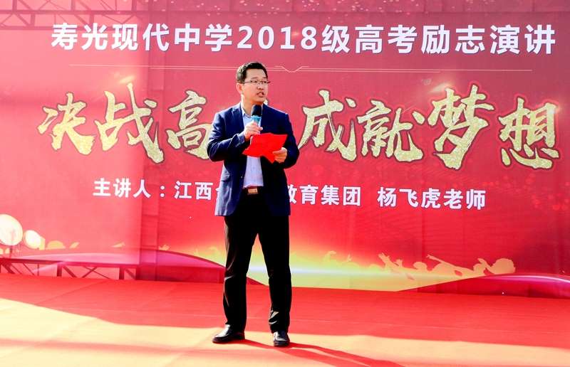 为让高三学子进一步明确高考奋斗目标,坚定高考必胜信心,激发学习潜能,勇逐人生梦想,10月25日下午,寿光现代中学2018级全体师生在学校体育场隆重集会,邀请中国著名青年励志演说家杨飞虎老师作了题为“决战高考,成就梦想”的励志演讲。活动由学校党委委员、高三年级包级校长张法国主持。
