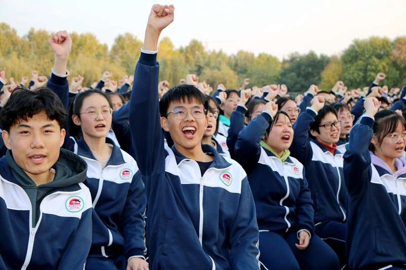 学生代表隋月峰带领全体学生宣誓,铮铮誓言响彻校园,激发出同学全力冲刺、高考必胜的澎湃激情,现场气氛达到高潮。
