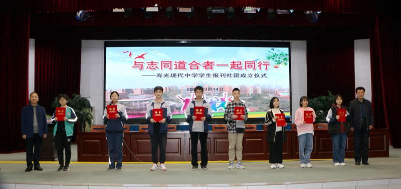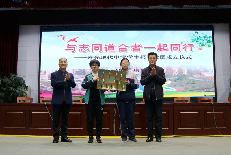 这是一场仪式感满满、意义重大的活动。孙安源校长和杨卫忠副校长为学生报刊社团授牌并为学生社团团长、报刊编辑部主编、副主编颁发了聘书。学生报刊社团的成立,是寿光现代中学发展史上的一件大事,对学校全面实施素质教育,挖掘学生自治管理潜力,推进语文、英语阅读教学改革具有重要的意义,同时,它也是建设和弘扬特色校园文化的又一面崭新的旗帜。新学期,寿光现代中学将以“学生报刊社团”成立为契机,立足个性化,创建品牌化,走向特色化。