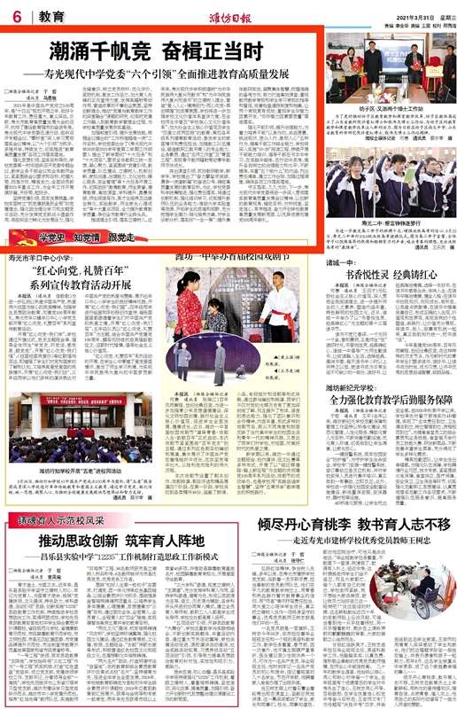 潍坊日报A6版发表我校推动教育高质量发展工作纪实文章