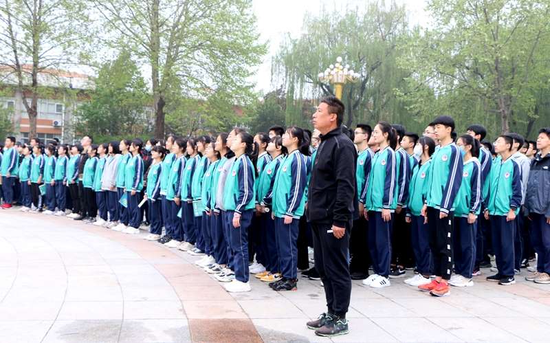 4月27日清晨,寿光现代中学升旗仪式在学校广场举行,学校部分党委会成员、高一一部、二部全体师生参加了升旗仪式。高一一部主任王安辉主持仪式。