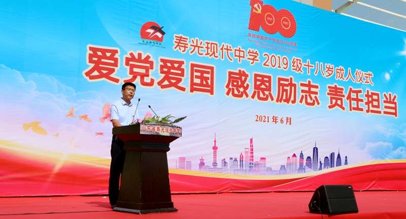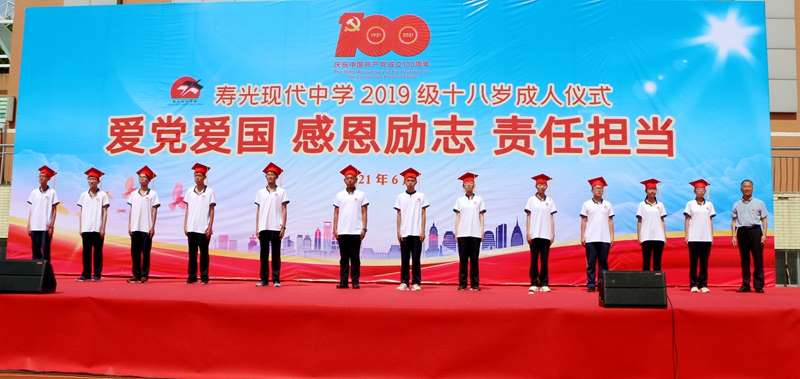 “成人礼”是中国重要的传统仪式,也是寿光现代中学的品牌德育活动之一。在中国共产党百年华诞来临之际,学校以“研学+仪式”的形式为2019级学生上了一堂形象生动的户外思政课,旨在引领现代学子肩负时代使命,扛起国家责任,争做红色传人,成为2035祖国盛景的建设者、2049美好蓝图的绘就者。接受了这场特殊的“青春洗礼”,同学们将以更昂扬的姿态、更饱满的精神投入到学习生活中去,以更拼搏的精神、更优异的成绩报答家长的养育之恩,回报老师们的辛勤培育,努力成为祖国建设和民族复兴的优秀栋梁。