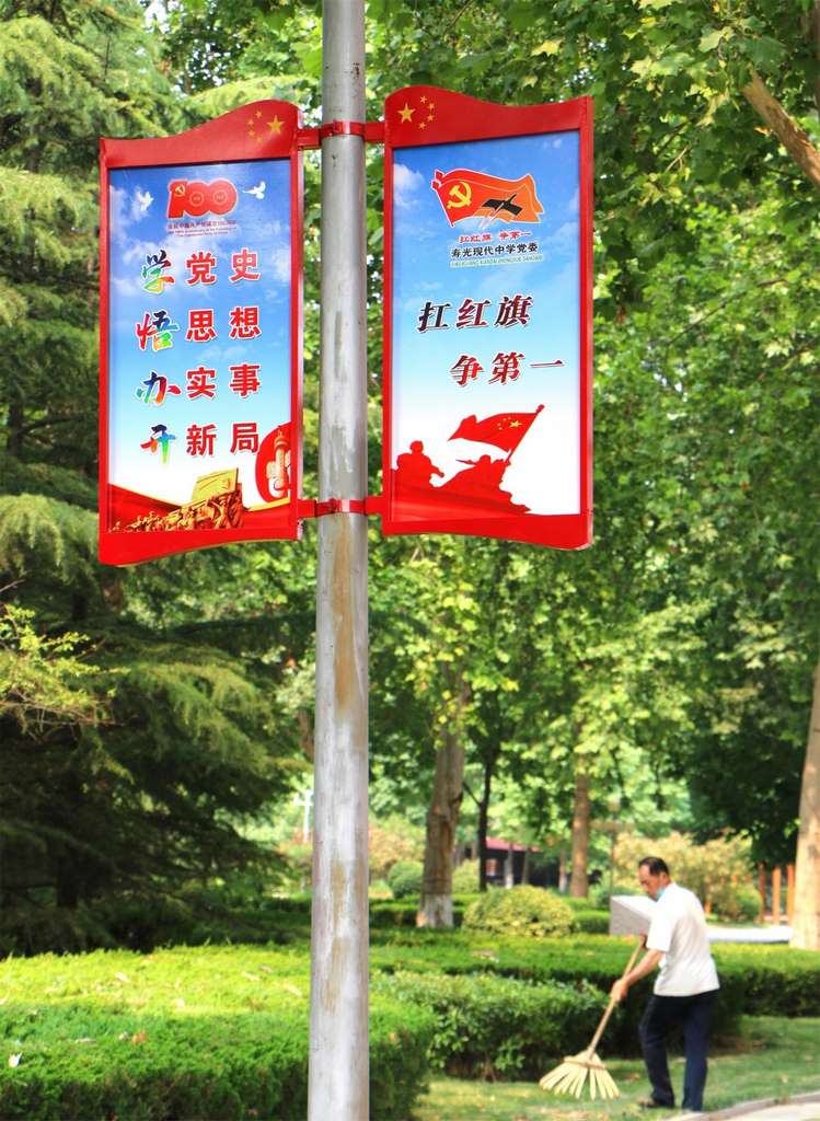 在庆祝建党100周年之际,为加强校园文化建设,提升校园文化品味,近日,寿光现代中学充分挖掘校园环境潜移默化的育人功能,打造了25个会“说话”的灯杆,以无声的教育感染每一位师生。