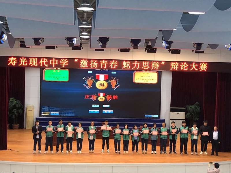 为提高学生的思辨能力和表达能力,普及辩论知识,丰富校园文化生活,11月26日晚,寿光现代中学高二年级在学校报告厅举办了“激扬青春 魅力思辨”辩论赛。本次辩论赛评委会由学校“金苹果文学社”社员担任,点评嘉宾为王兴国老师与李少波老师。比赛秉持公平、公正、公开的原则,分两场初赛和一场决赛。