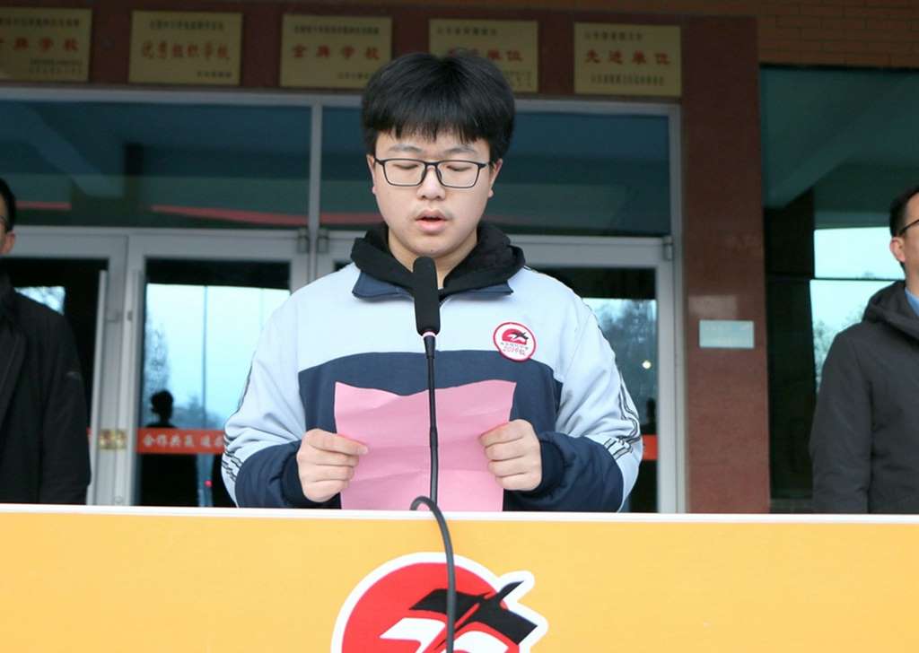 学生代表于凌波发表了《立鸿鹄之志 展拼搏之姿》为题的国旗下讲话:“在奋斗的路上,没有谁能代替我们承受痛苦,然而谁也夺不走我们的坚强。”他呼吁全体同学在距高考不到200天里,以拼搏之姿,聚奋发之力,脚踏实地、刻苦攻读,在明年六月的高考中实现我们的鸿鹄之志。