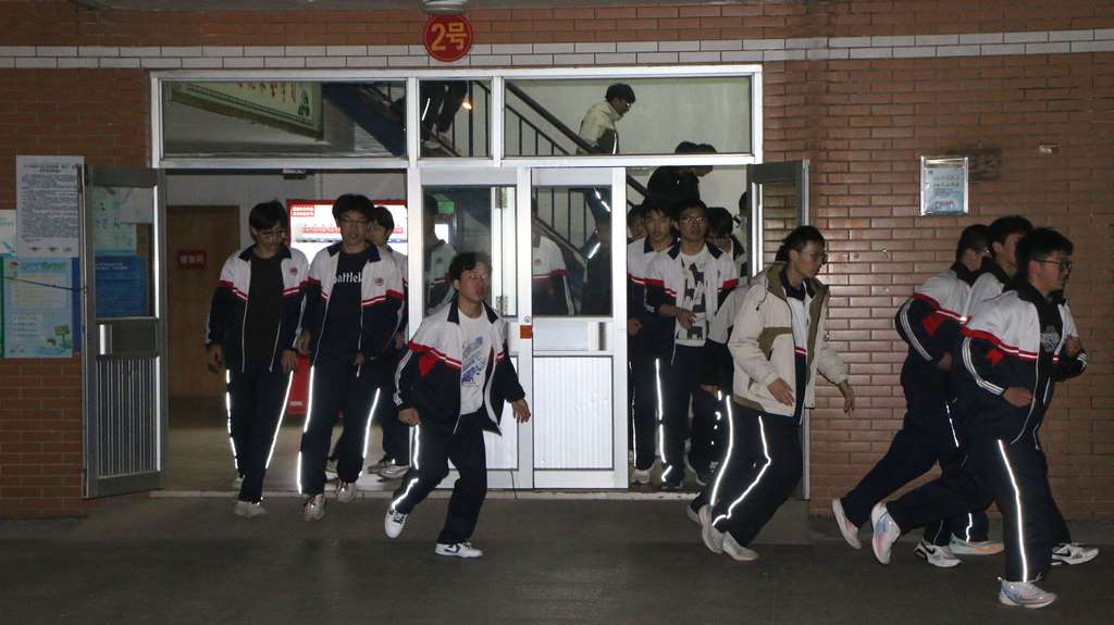 寿光现代中学开展夜间防地震安全演练