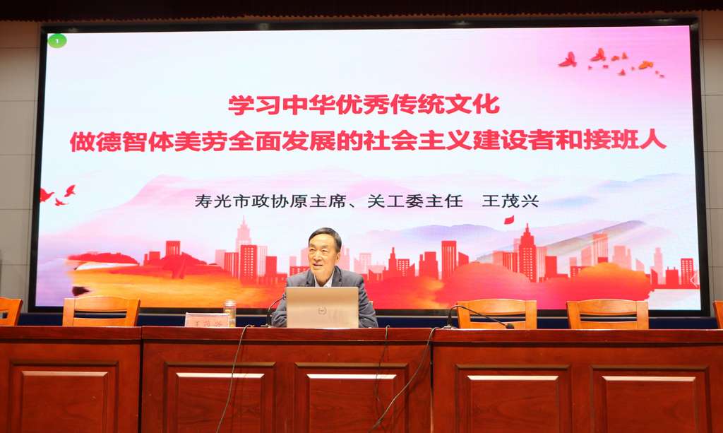 为进一步夯实青少年思想道德根基,筑牢他们的家国情怀,4月3日上午,寿光现代中学特邀寿光市政协原主席、关工委主任王茂兴到校作《学习中华优秀传统文化,做德智体美劳全面发展的社会主义建设者和接班人》为主题的讲座。