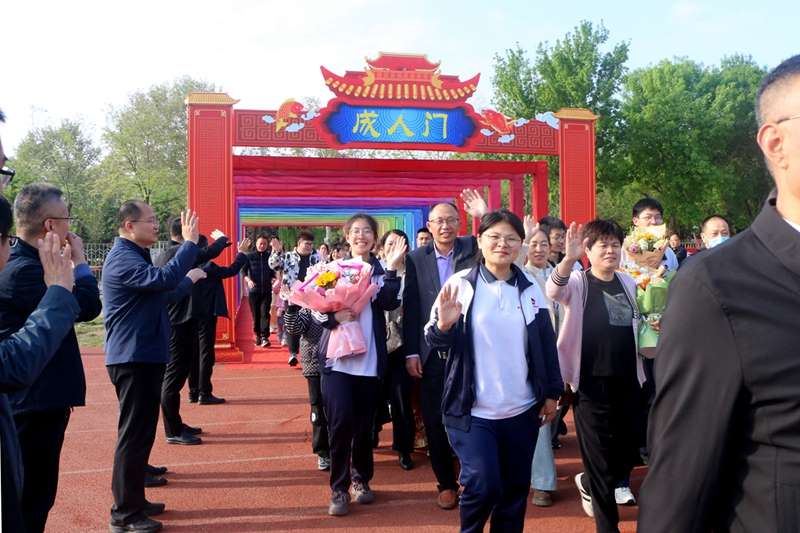 校领导及教师代表在成人门前迎候,为每位学子送上殷切祝福。阳光穿过拱门,为青春加冕,这一刻,成长的仪式感与使命感在同学们心头激荡。