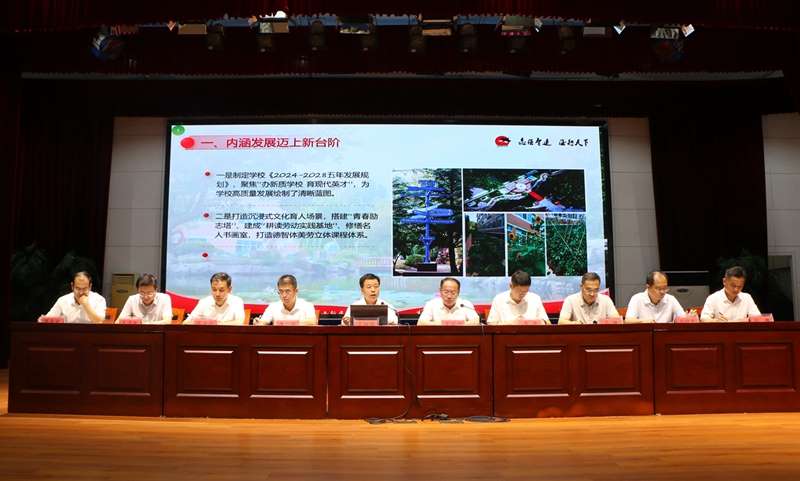 会议部署了新学年五大重点任务:一是加快硬件提质,在民校申办、图书馆升级成功完成的基础上,全力推进生物奥赛实验室、气膜体育馆、智慧校园等项目建设,不断改善办学条件;二是深化教学改革,加强尖优生培养与奥赛辅导,完善教学评价机制,促进教研深度融合;三是推进文化育人,建设“清北墙”“博士墙”,优化校园文化环境,凝聚“家校社”合力;四是筑牢安全底线,强化意识形态管理、心理健康教育和党风廉政建设;五是做实“暖心工程”,关注教师需求,改善工作条件,营造更有温度的育人环境。