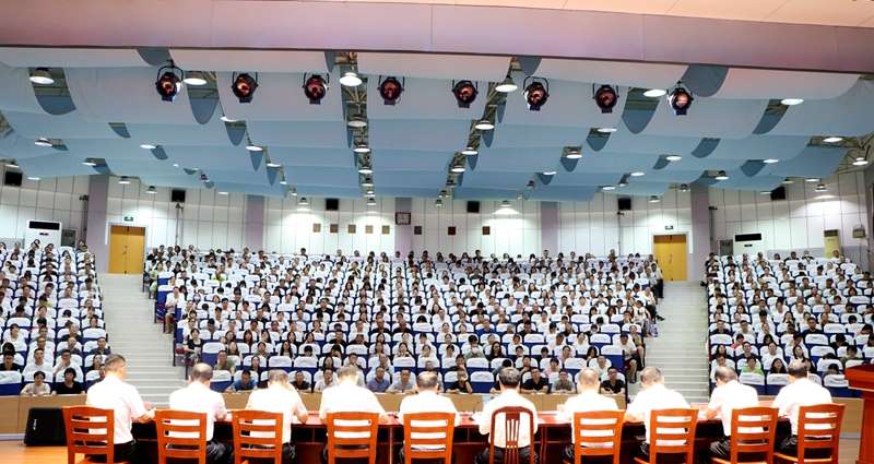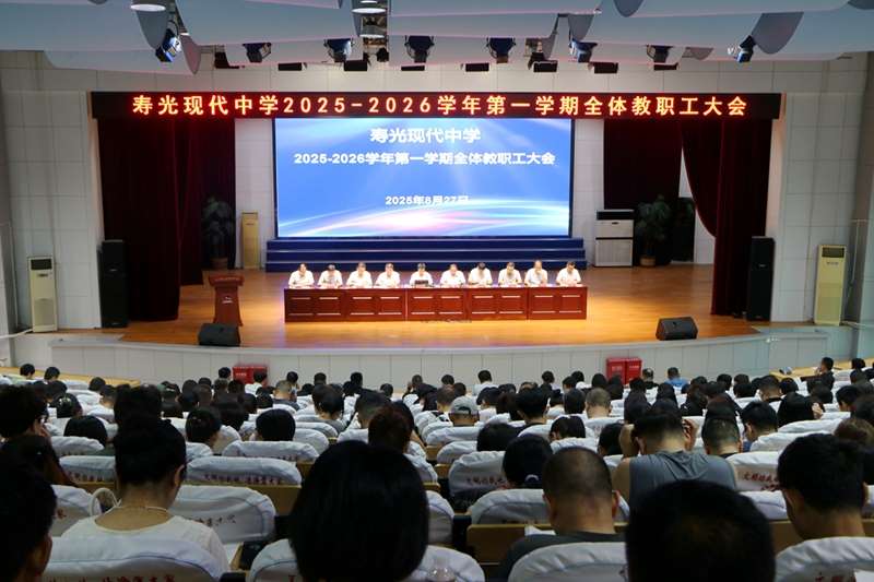 为确保新学年各项工作有序开展,明确新学期工作方向,凝聚全体教职工奋进力量,8月27日,寿光现代中学2025—2026学年第一学期全体教职工大会在艺术楼报告厅召开。学校党委书记丁超德带领校级班子成员与全体教职工齐聚一堂,共同开启新学期实干新篇章。会议由党委委员、副校长吴福海主持。