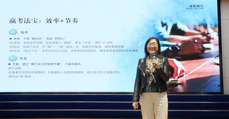 讲座聚焦高三学生常见的心理状态,李百芹老师深刻指出,“自我设限”“盲目比较”“伪努力”是阻碍学生持续进步的三大心理枷锁。她强调,真正的竞争不仅是知识的比拼,更是心态的较量;许多学生并非能力不足,而是被过度关注排名、畏惧结果的情绪所束缚,陷入无谓的内耗。李老师引导学生树立正确的成长观、成败观:“排名代表过去,潜力属于未来”“不被定义,方能无限可能”,鼓励大家打破思维边界,相信自己具备“黑马”般的突破力量。