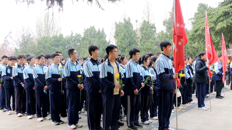 仪式现场,党委委员、强基年级负责人陈金光致辞,他勉励全体师生以先烈为榜样,将爱国之情转化为报国之行,在学习与工作中勇挑重担、砥砺前行。强基高二年级主任张卫卫在发言中表示,将把对英烈的崇敬融入教育教学,引导学生传承红色基因,厚植家国情怀。学生代表李梓瑄代表同学们郑重承诺,定当铭记先烈遗志,珍惜来之不易的幸福生活,以青春之我、奋斗之我,为强国建设添砖加瓦。